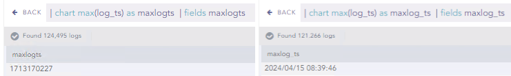 I have tested your search and i it seems like the |chart max(log_ts) as maxlogts breaks the process command.