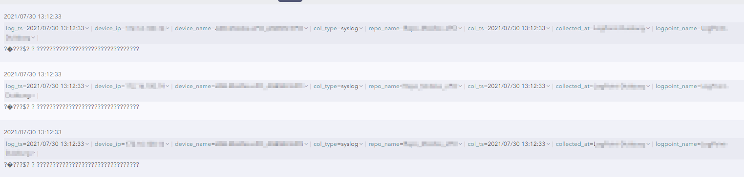 tcpdump I already tried to change the charset min the log m,collection policy from utf_8 to iso8559_15 and ascii, to no avail.